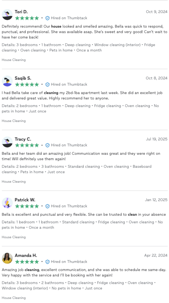 Nothing means more to us than the trust our clients place in Espinosa Cleaning Service. From busy families to business owners across Pittsburgh, our customers know that when Bella cleans — she goes above and beyond. Her reliability, attention to detail, and genuine care have earned her a reputation as one of the most dependable cleaning services in Pittsburgh.